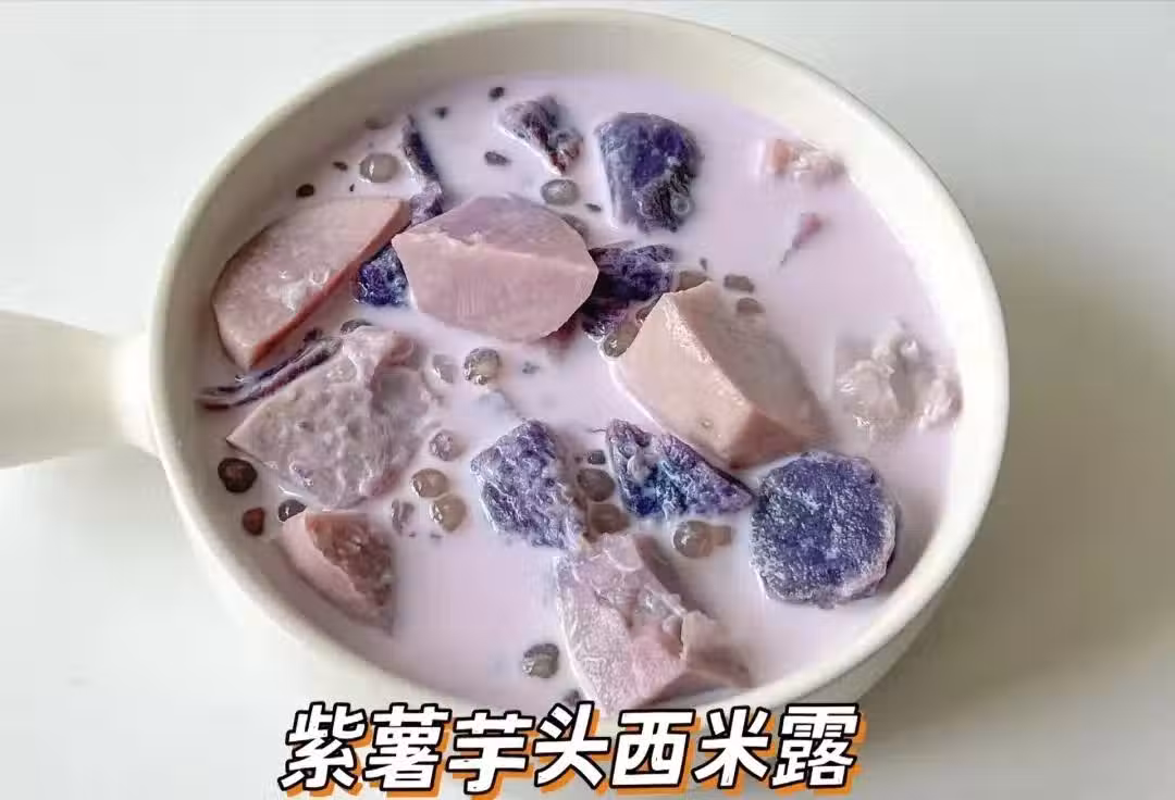 重點:芋泥濃稠度用牛奶調節,太稀會掛不住杯。