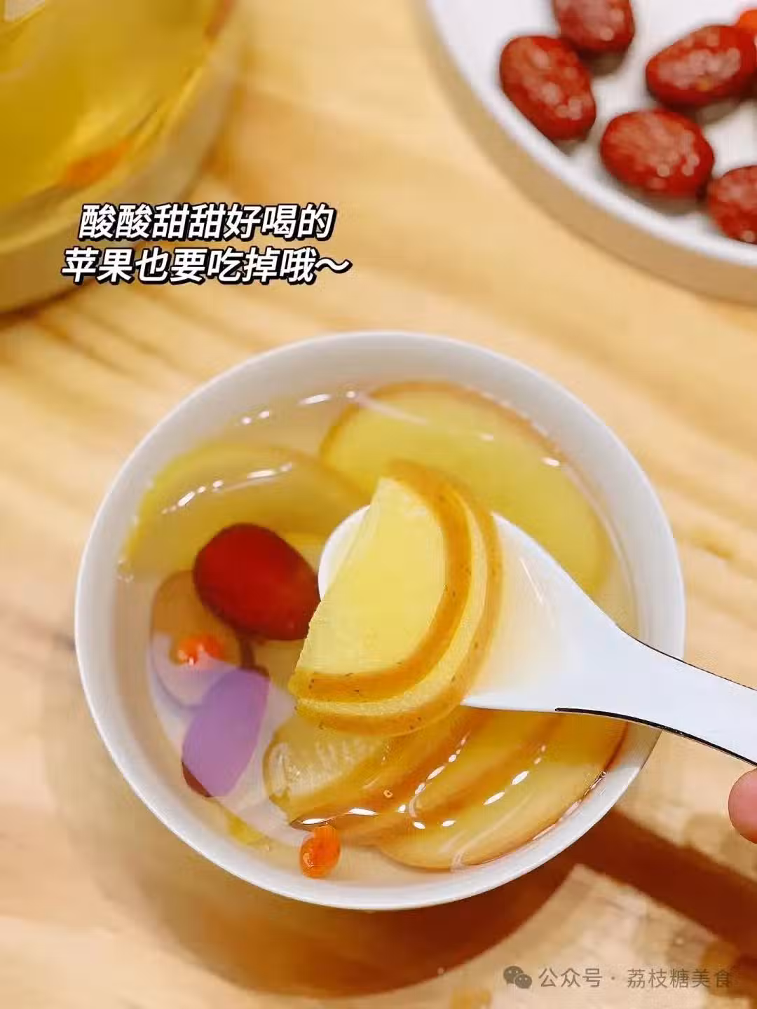 1.以上食材洗凈,蘋果🍎切塊,紅棗切片放入養生壺,花🌸茶模式即🉑