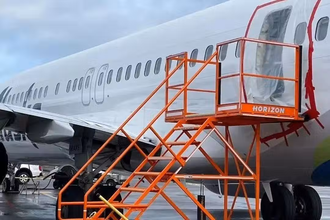 一架波音737MAX9型客機在飛行期間一處門塞脫落(資料圖)
