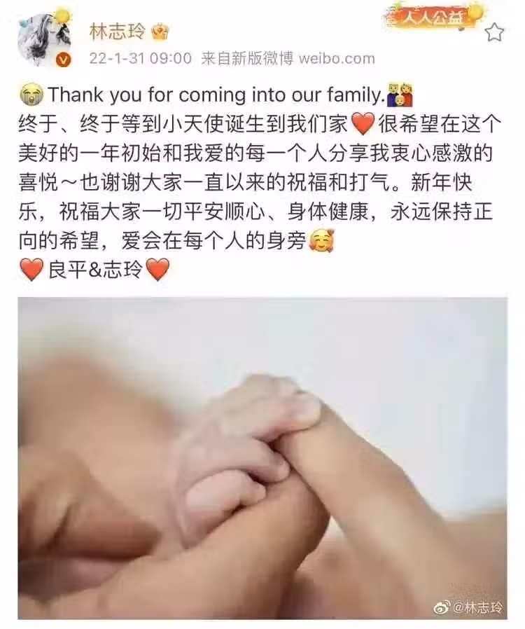 春節前夕林志玲官宣自己生了寶寶的消息