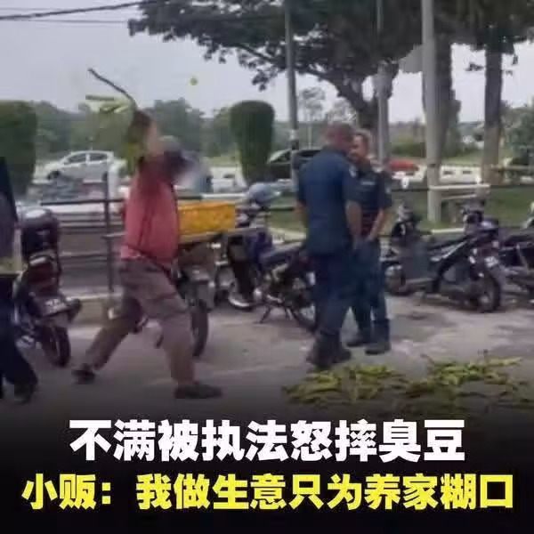 (波德申21日訊)社交媒體近日流傳一段視頻,畫面顯示一名男子因不滿被波德申市議會執法取締,不允許他在停車場使用摩哆做生意而感到沮喪,甚至將所有出售的臭豆怒摔在路面,以示抗議執法人員對他的取締。