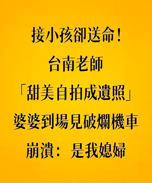 接小孩卻送命!台南老師「甜美自拍成遺照」,婆婆「到場見破爛機車」崩潰:是我媳婦
