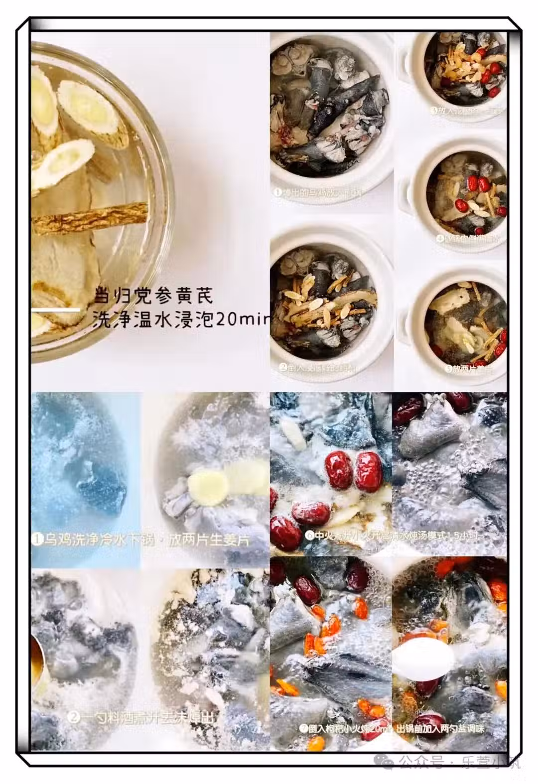 烏雞是滋陰補血的佳品,當歸補血活血,與黃芪一同燉煮,能起到氣血雙補的作用,尤其適合女性經期後或產後調養身體。