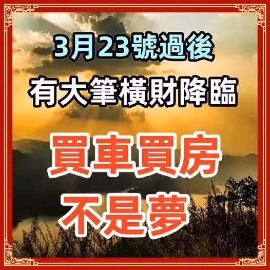 3月23號過後有大筆橫財降臨,買車買房不是夢