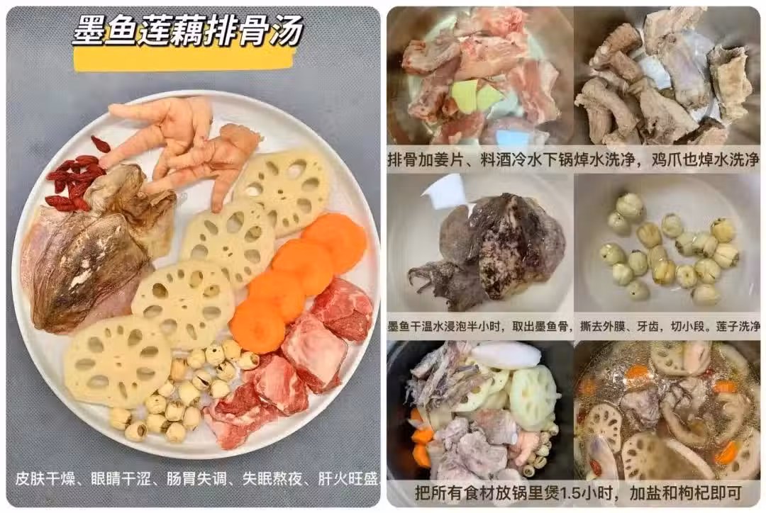 口感清甜滋潤,湯汁濃郁,喝起來很順滑,還帶有淡淡的草本香氣。孕婦要避開西洋參和石斛哦,快給熬夜的自己安排上吧!