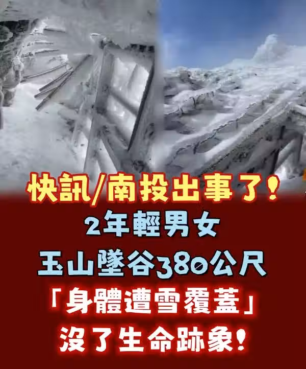 南投出事了,2男女玉山墜谷380米「遭雪覆蓋」,已沒生命跡象!