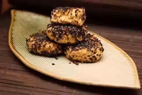 食材:麵粉50克、滷水豆腐100克、素肉末20克、白蘿蔔20克、鹽、麻油少許、糖少許、黑芝麻10克。