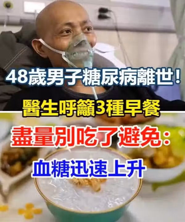 48歲男子糖尿病離世!醫生呼籲「三種早餐」儘量別吃了 避免:血糖迅速上升