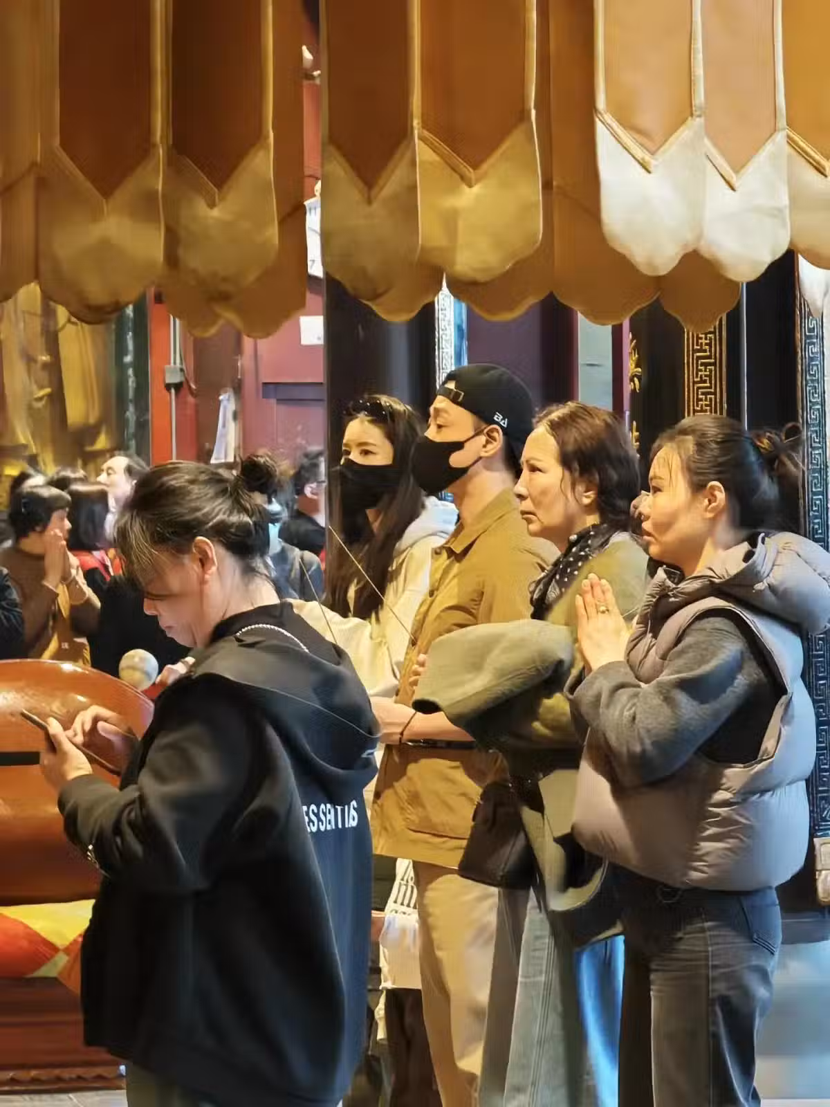 不管怎麼說,去寺廟拜佛,還戴著口罩和帽子,確實是有點不尊重佛祖了。