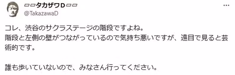 《澀谷Sakura Stage》這棟大樓有一座設計超爛的樓梯,擺明故意要害人摔死吧