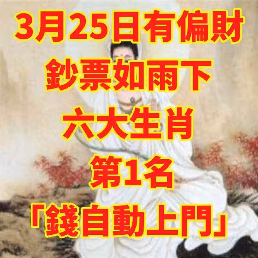 3月25日有偏財,鈔票如雨下的生肖! 第1名「錢自動上門」!