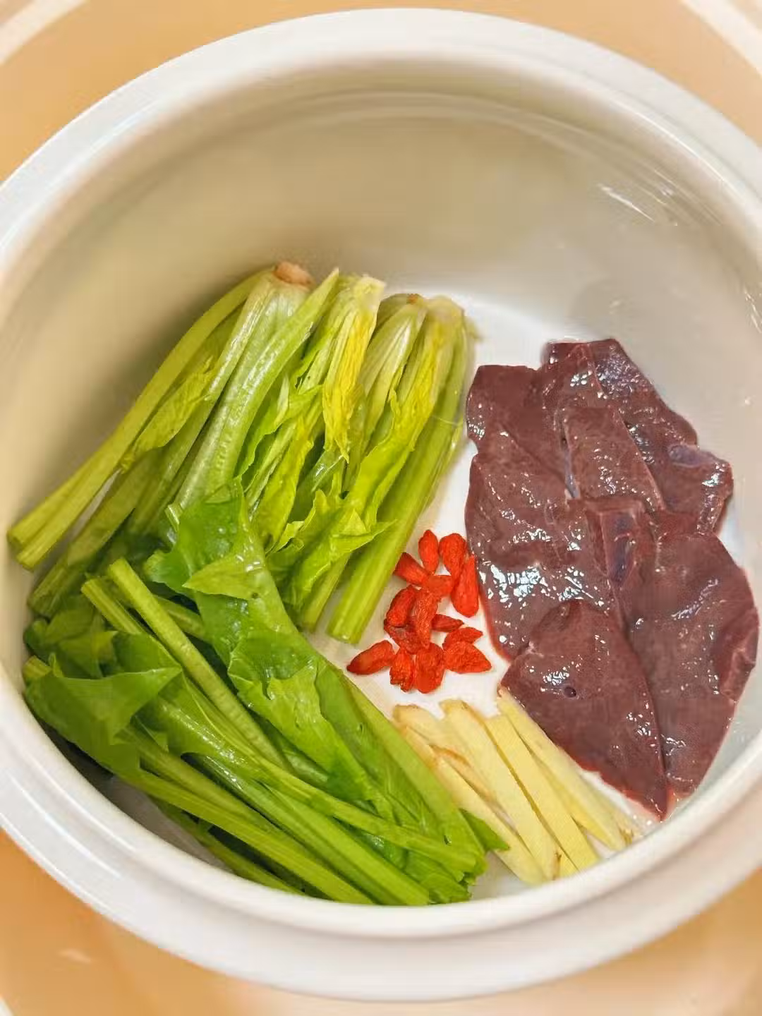 豬肝、富含鐵質和優質蛋白質,是血紅蛋白的重要合成原料。豬肝還含有豐富的維生素A和B族維生素,這些維生素對視力、神經系統、紅細胞生成以及能量代謝等方面都發揮著重要作用,菠菜、含有大量的膳食纖維,有助於促進胃腸蠕動,加快食物的消化和吸收。菠菜也含有一定量的鐵質、維生素A和胡蘿蔔素等營養素,對保護眼睛健康、增強免疫力等也有積極作用。