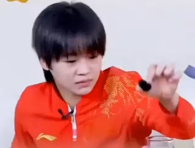 作為奧運冠軍的全紅嬋,自然是要坐上C位的,她的好搭檔陳芋汐就坐她旁邊。即便是在鏡頭前,全紅嬋還是暴露了小吃貨的本性。