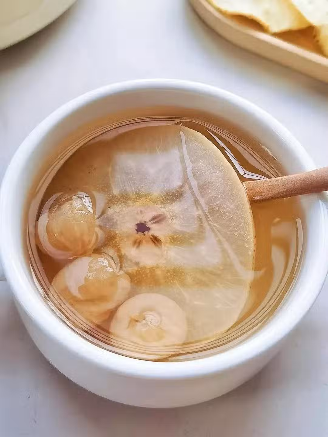 這碗紅參雪梨湯是我最愛的一種,潤到嗓子裡的「神仙水!每次喝完都感覺喉嚨像被泉水澆過,手腳暖呼呼的。