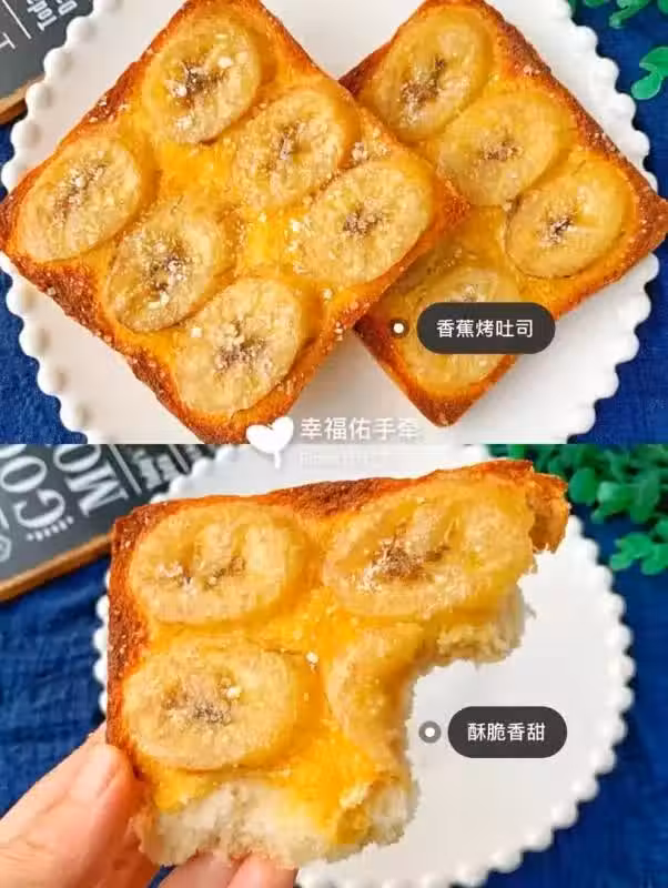吐司2片、雞蛋1個、白砂糖少許、香蕉1根、黃油10克