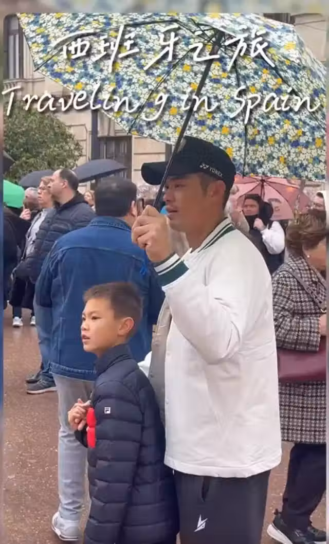 林丹曬與妻兒合照,抱著8歲兒子不撒手,與謝杏芳卻是形同陌路