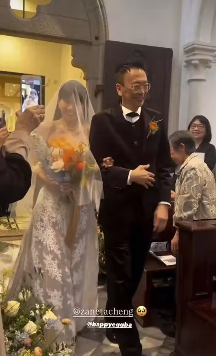 在教堂舉辦的是註冊儀式,實際上鄭瑤在2024年9月就已經與丈夫註冊了,不過還是要走一遍西式婚禮的儀式。鄭瑤在教堂行禮的時候,換上了白色抹胸婚紗,身上的金器都已經摘下,取而代之的是鑽石珠寶。