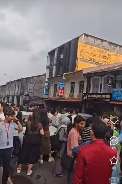 檳城也感受到震感,喬治市鴨加路站滿緊急疏散的人群。