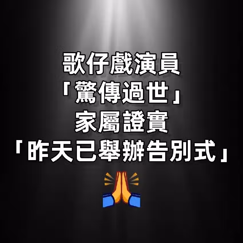 歌仔戲演員「驚傳過世」!家屬證實「昨天已舉辦告別式」