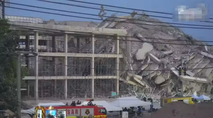 緬甸地震,泰國房屋倒塌。(圖/華子琛攝影)