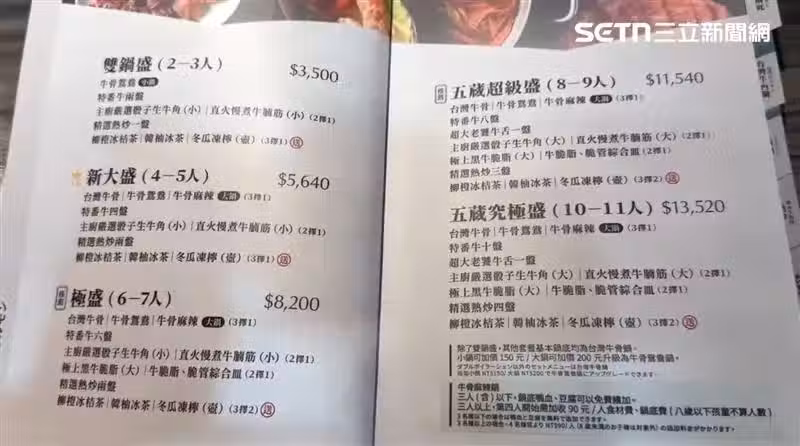 ▲翻開菜單,火鍋價位也不低。(圖/翻攝畫面)