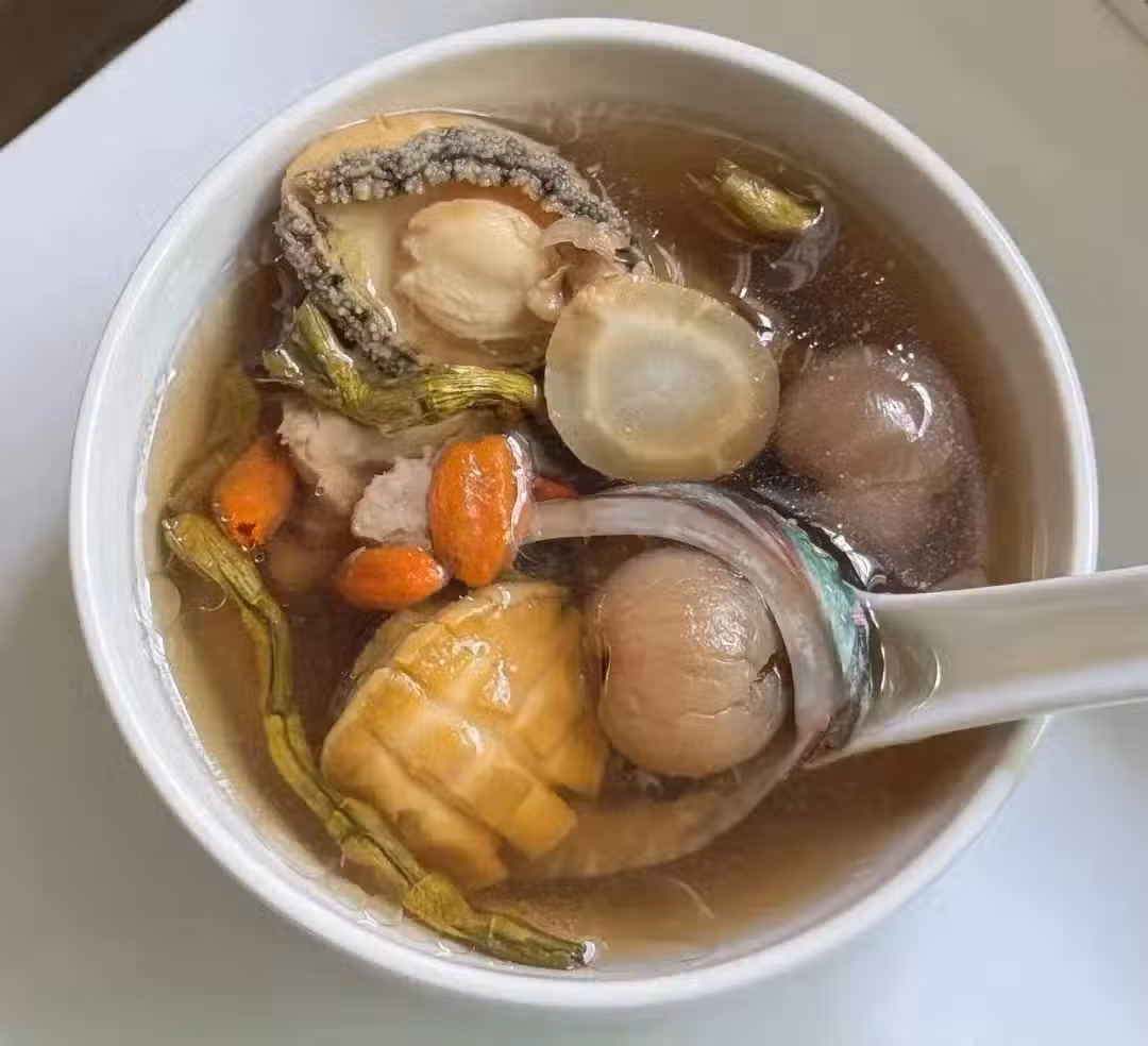 ✔️小貼士:鮑魚殼是一味降肝火良藥,煲湯時不要丟,放在湯里一起煮。加入桂圓可以安神補氣血,讓湯變得溫補不寒涼。