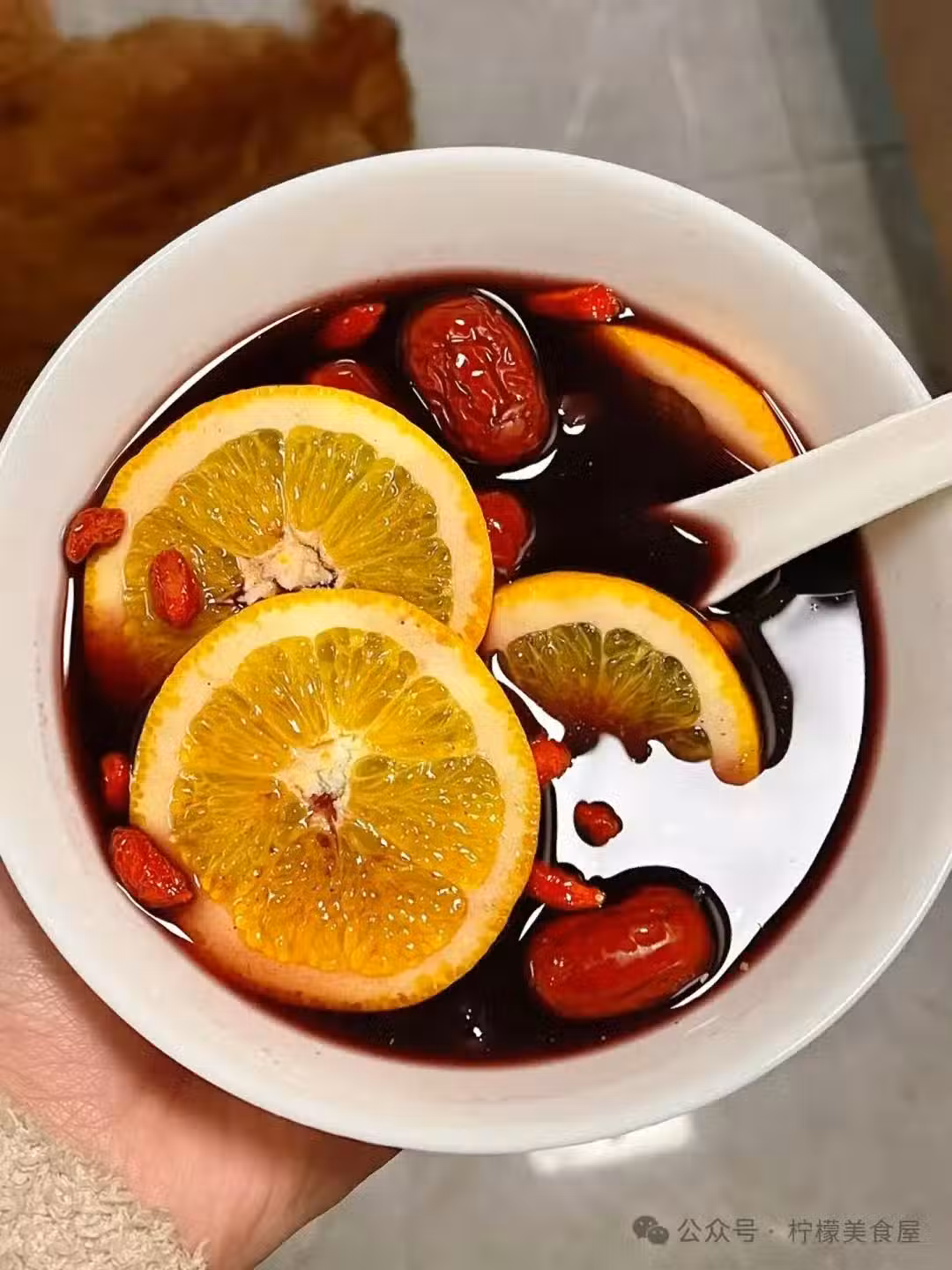 橙子生津止渴、降脂、消食下氣。黑枸杞護肝明目、美容養顏。桑葚搭配這兩種食材煮水喝,真的太棒了。 女孩子春天可一定要來一杯,滿滿的花青素和VC,喝起來,酸酸甜甜,真的很開胃,比奶茶飲料強多了。黑枸杞原漿也可以不下哦。 食材: 橙子1個切片、桑葚5g、黑枸杞5g、紅枸杞5g、紅棗5-6顆、黑枸杞原漿30ml