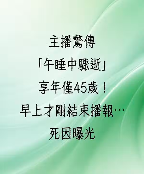 主播驚傳「午睡中驟逝」享年僅45歲!早上才剛結束播報…死因曝光