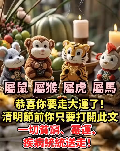 【屬鼠 屬猴 屬虎 屬馬】恭喜你要走大運了!清明節前你只要打開此文,一切貧窮、霉運、疾病統統送走!