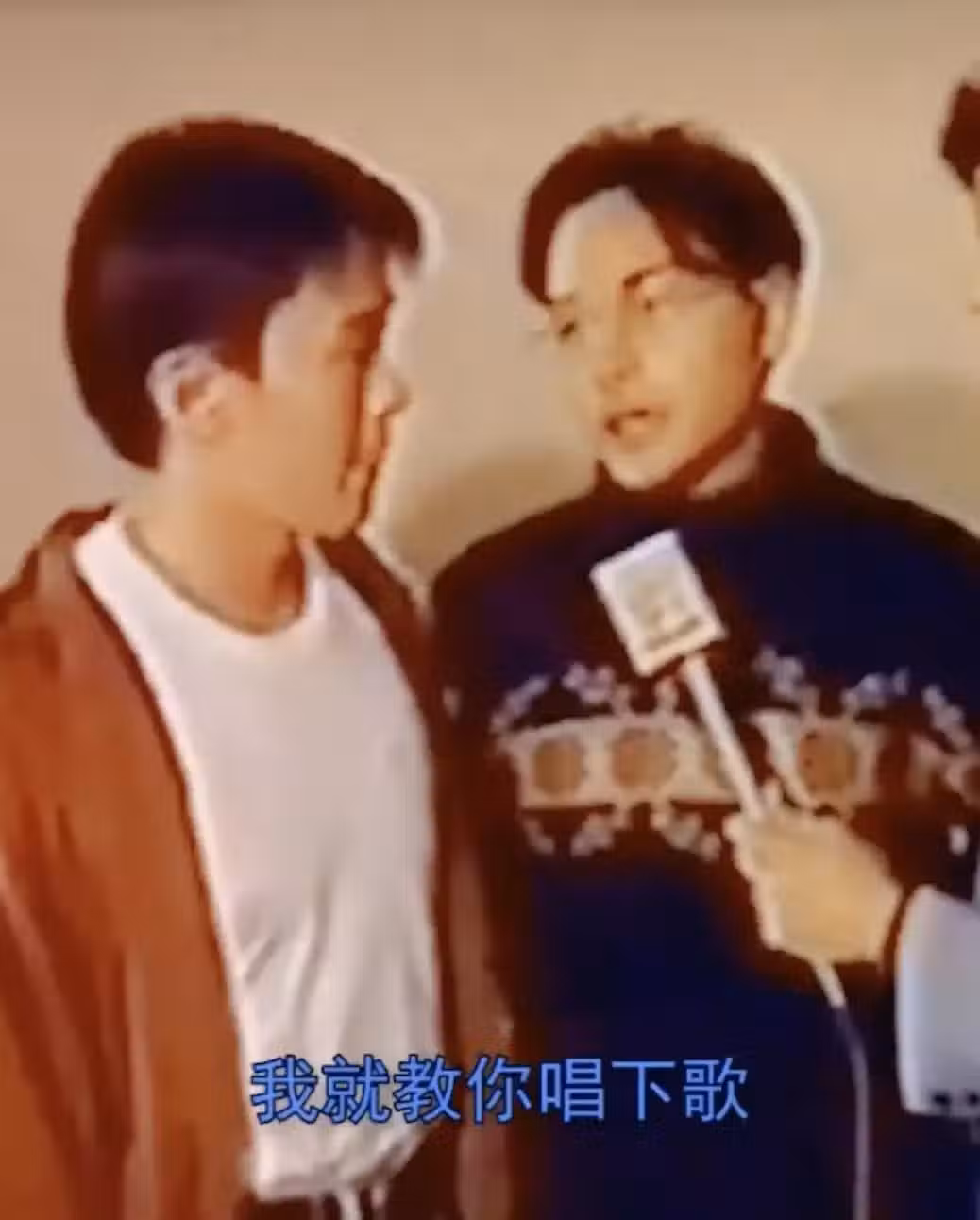 聽到周星馳誇獎自己,張國榮也回了一句:日後有機會的話,我就教你唱歌。