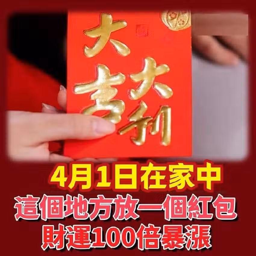 風水師偷偷透露:4月1日在家中這個地方,放一個紅包,竟能讓財運100倍暴漲,好運一路旺到年底!