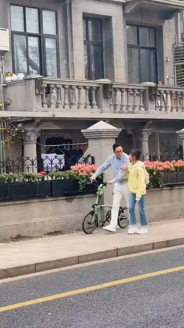 影片中看到一名少女手挽著吳啟華胳膊,估計是劇中飾演吳啟華的女兒。而走到一處陽台位置,另一女演員便向他們父女二人伸手打招呼。這位在陽台上的演員正是金巧巧。