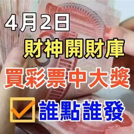 4月2日財神開財庫,誰點誰發,買彩票中大獎。