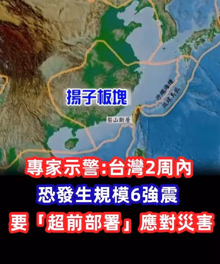 專家示警:台灣揚子板塊2周內,將發生規模8級大地震!