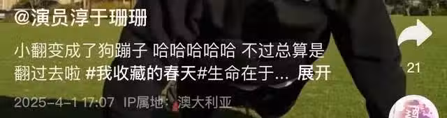 4月1號,演員淳于珊珊分享了一則日常鍛鍊的畫面,並因此引發熱議,連帶他所在的位置以及身體狀態都讓人產生了遐想。