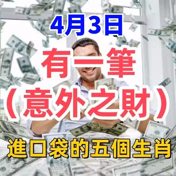 4月3日開始有一筆意外之財進口袋,恭喜五個生肖鈔票滾滾來!