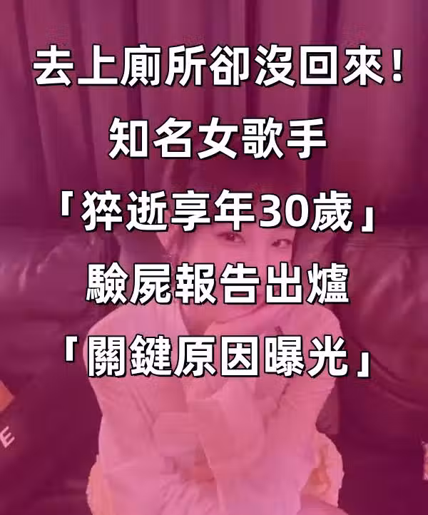 去上個廁所卻沒回來!知名女歌手「猝逝享年30歲」 驗屍報告出爐「關鍵原因曝光」
