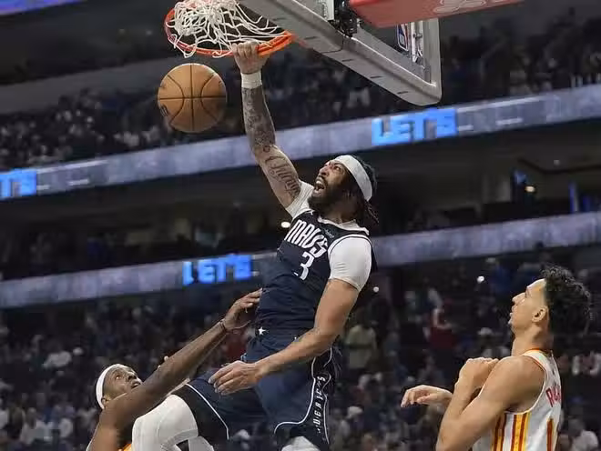第四節比賽,克萊三分+濃眉連得4分,獨行俠領先12分,暫停回來曼恩、特雷楊、尼昂、奧孔古連續得分,分差追到3分,丁威迪拋投,丹尼爾斯、奧孔古連得4分,分差1分,馬紹爾、克萊把分差擴大到5分,奧孔古、丹尼爾斯8-0反超3分,暫停回來克萊三分追平分差,比賽還剩42秒,特雷楊上籃被濃眉蓋帽,丹尼爾斯失誤,濃眉拋投,獨行俠領先2分,比賽還剩3秒,特雷楊三分不中,獨行俠120-118擊敗老鷹,完成逆轉。