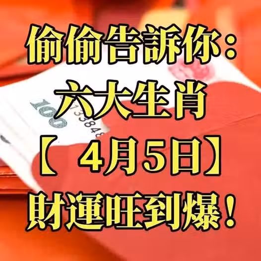 偷偷告訴你:六大生肖【4月5日】財運旺到爆