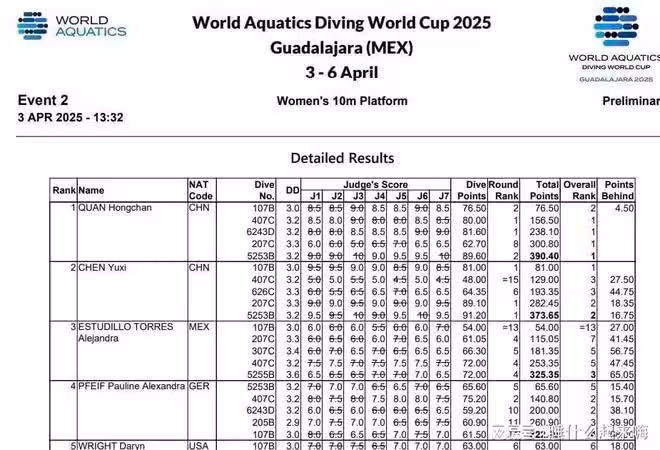 如果兩人在決賽時陳芋汐沒有出現失誤全部照常發揮,恐怕全紅嬋墨西哥跳水世界盃的第一名不是那麼好拿的,此時心中到底有多大的壓力,恐怕只有她自己知道。