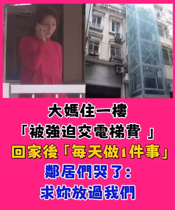 大媽住一樓「被強迫交電梯費 」 回家後「每天做1件事」鄰居們哭了:求你放過我們!