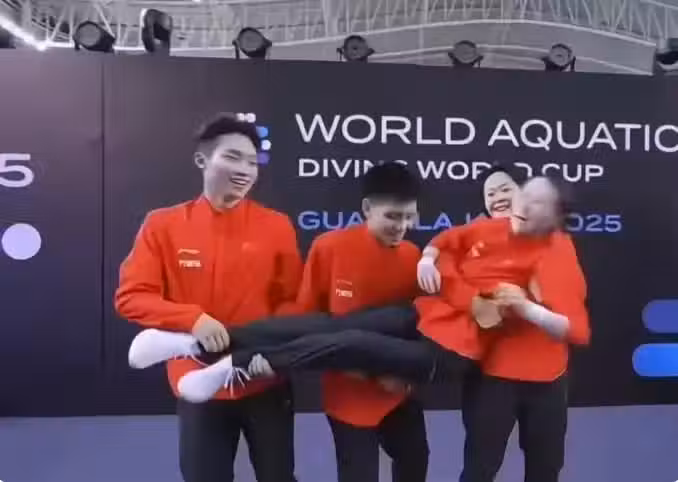 在這場混合團體賽的10米台項目中陳芋汐出戰交出了89.1分的高分,隨後男子10米台的程子龍交出了94.35分的高分,陳芋汐的這一跳也是幫助中國跳水隊獲得了混合團體賽的金牌。在陳芋汐鎖定了混合團體的金牌,拿到了2025年金牌的時候,場邊沒有出場的全紅嬋和陳若琳的舉動也是引發了很多網友的了熱議。