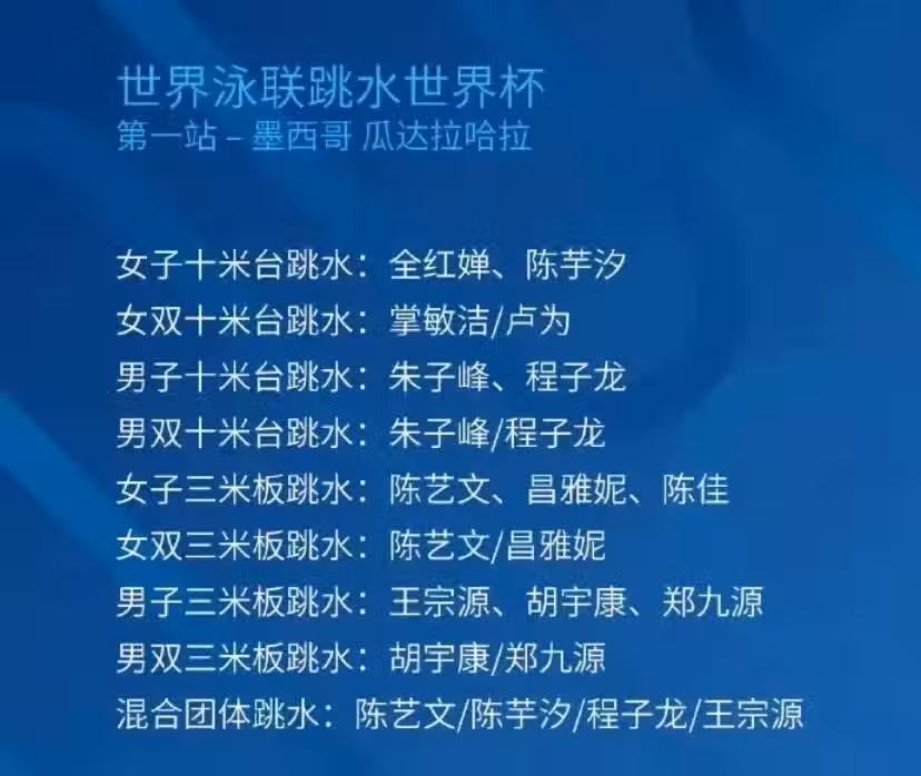 墨西哥跳水世界盃賽程!4月6日中國跳水隊賽程表!全紅嬋爭首金