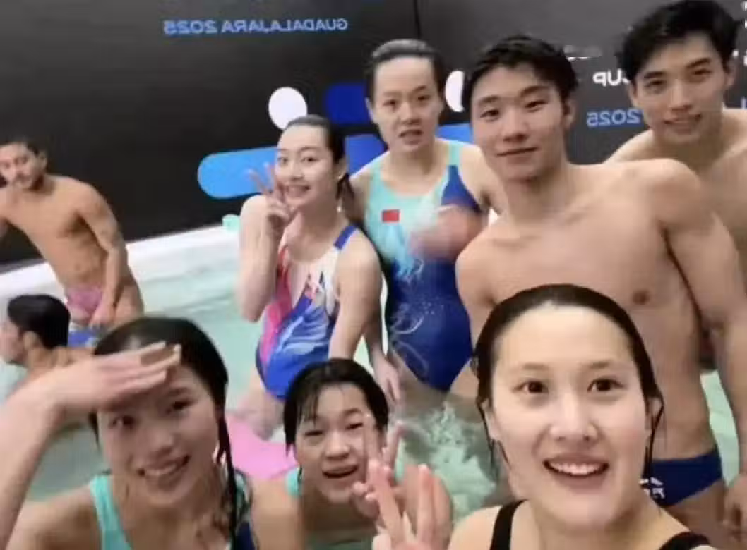 跳水隊的日常訓練照也格外吸引眼球。隊員們在訓練間隙拿著拍立得拍照,一張張合影里全是笑臉。