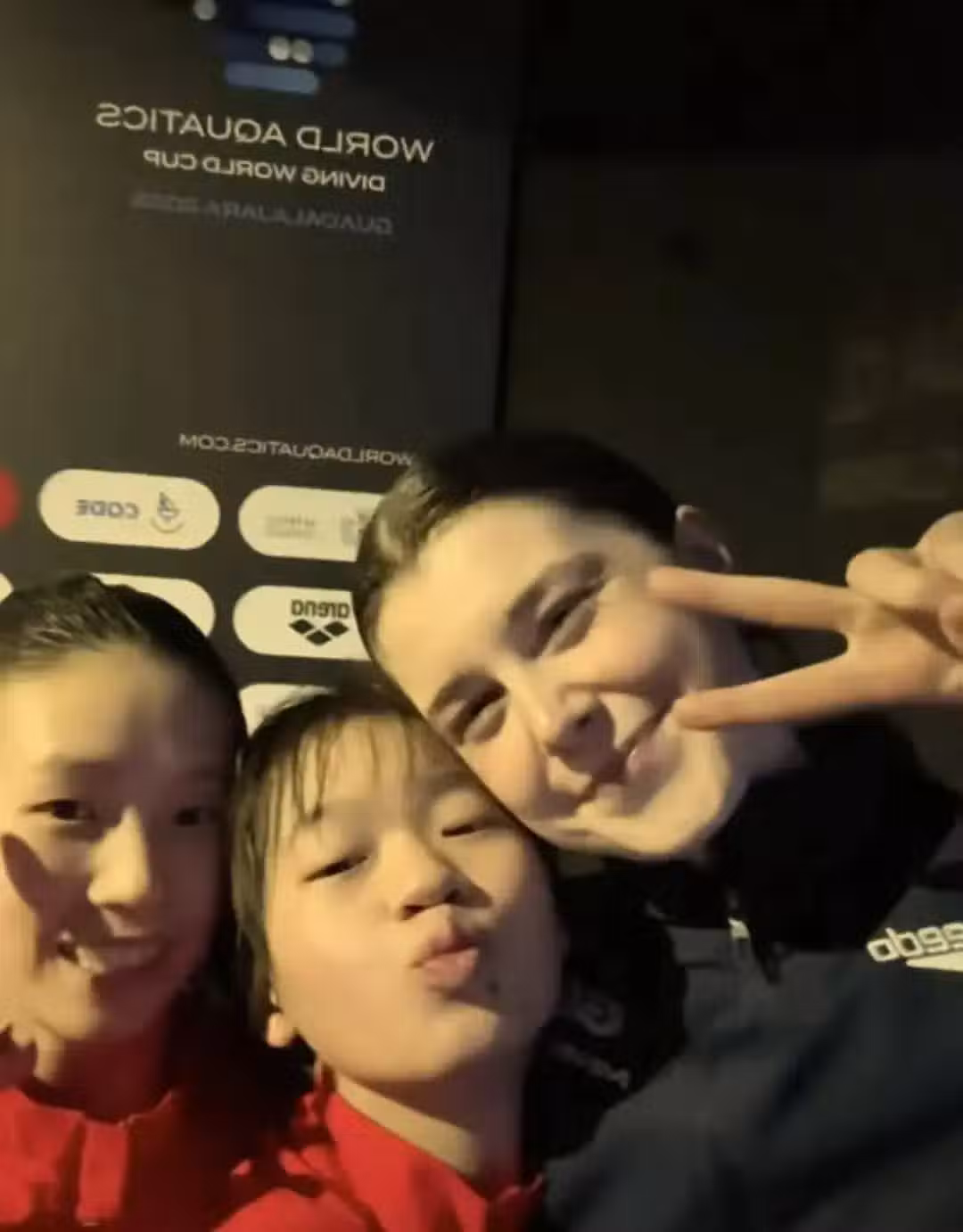 照片里還有不少跳水隊聚餐的場景。大伙兒圍坐在一起,有說有笑。全紅嬋在四個人中間的那張照片特別顯眼,小小的個子卻格外精神。隊友們對她也特別照顧,經常逗她開心。