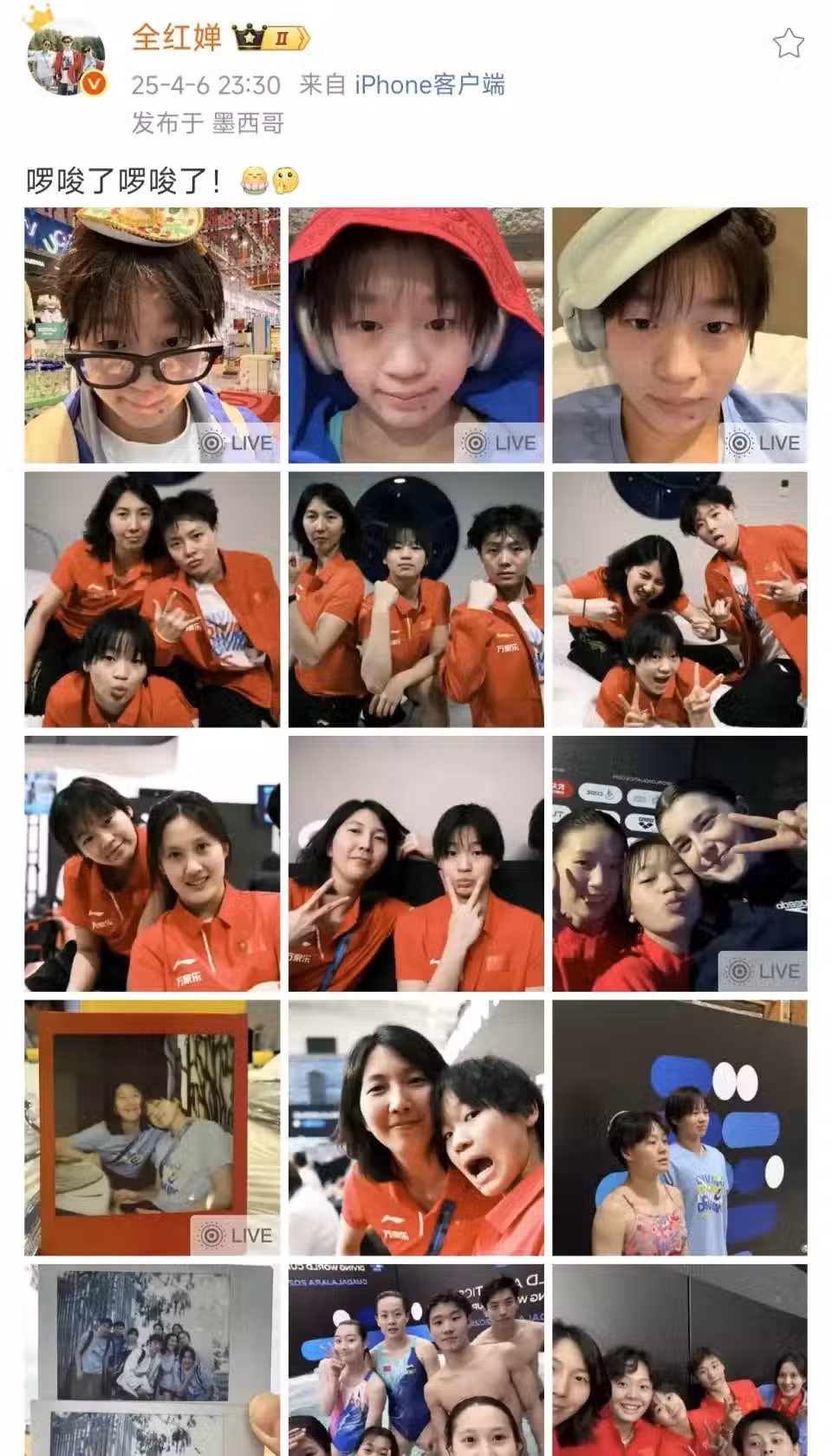 昨晚,全紅嬋一下子曬出18宮格的照片,並且配文道:「囉嗦了,囉嗦了。」由此可見,她並沒有受到世界盃失利的影響,心情相當不錯。