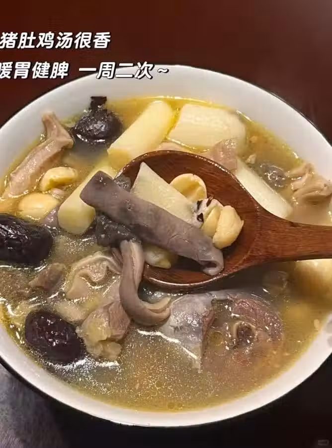 四神湯,健脾小能手!蓮子養神,芡實滋養,茯苓祛濕,山藥補氣。豬肚益胃,雞肉補虛,簡直是虛弱體質的專屬暖寶寶!🔥