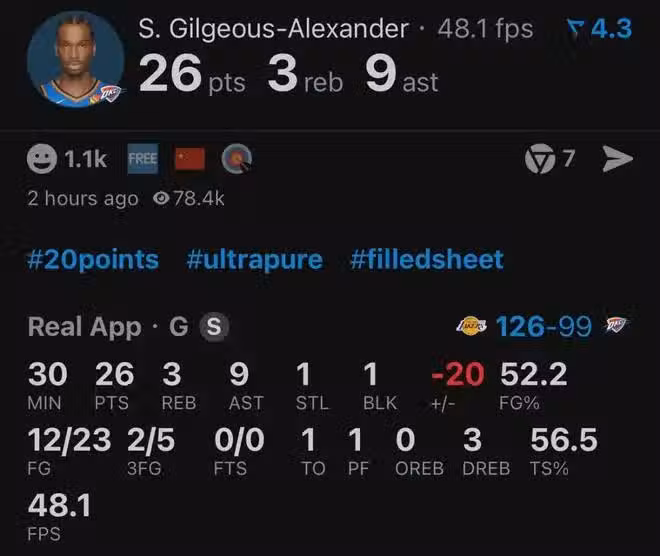 本賽季至今,亞歷山大場均罰球8.9次,這是他目前的生涯第二高,最高是22-23賽季的場均10.9罰。