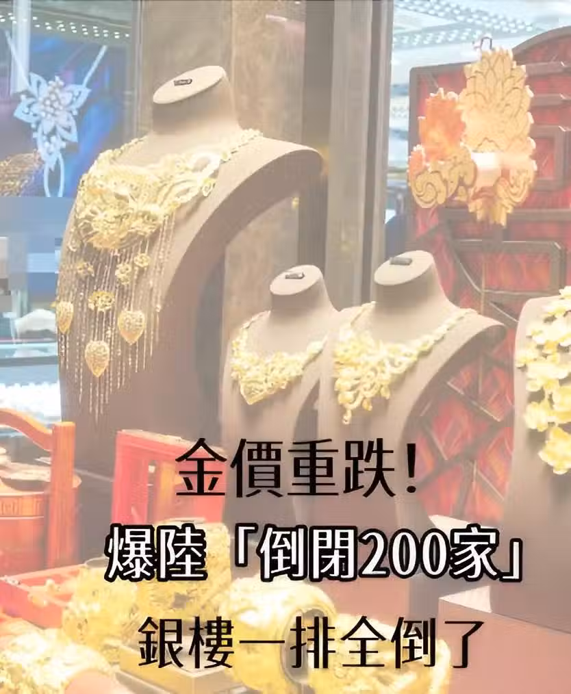 最新/金價重跌!爆陸「倒閉200家」,銀樓一排全倒了