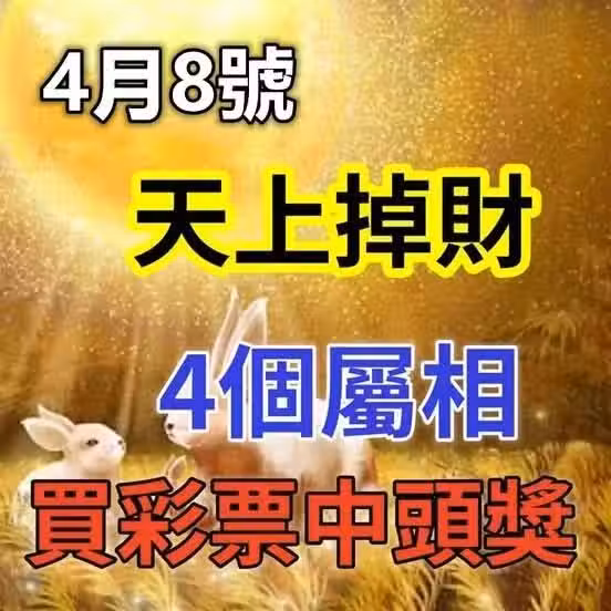 4月8號天上掉財,4個屬相買彩票就能中頭獎,還不快試試手氣。